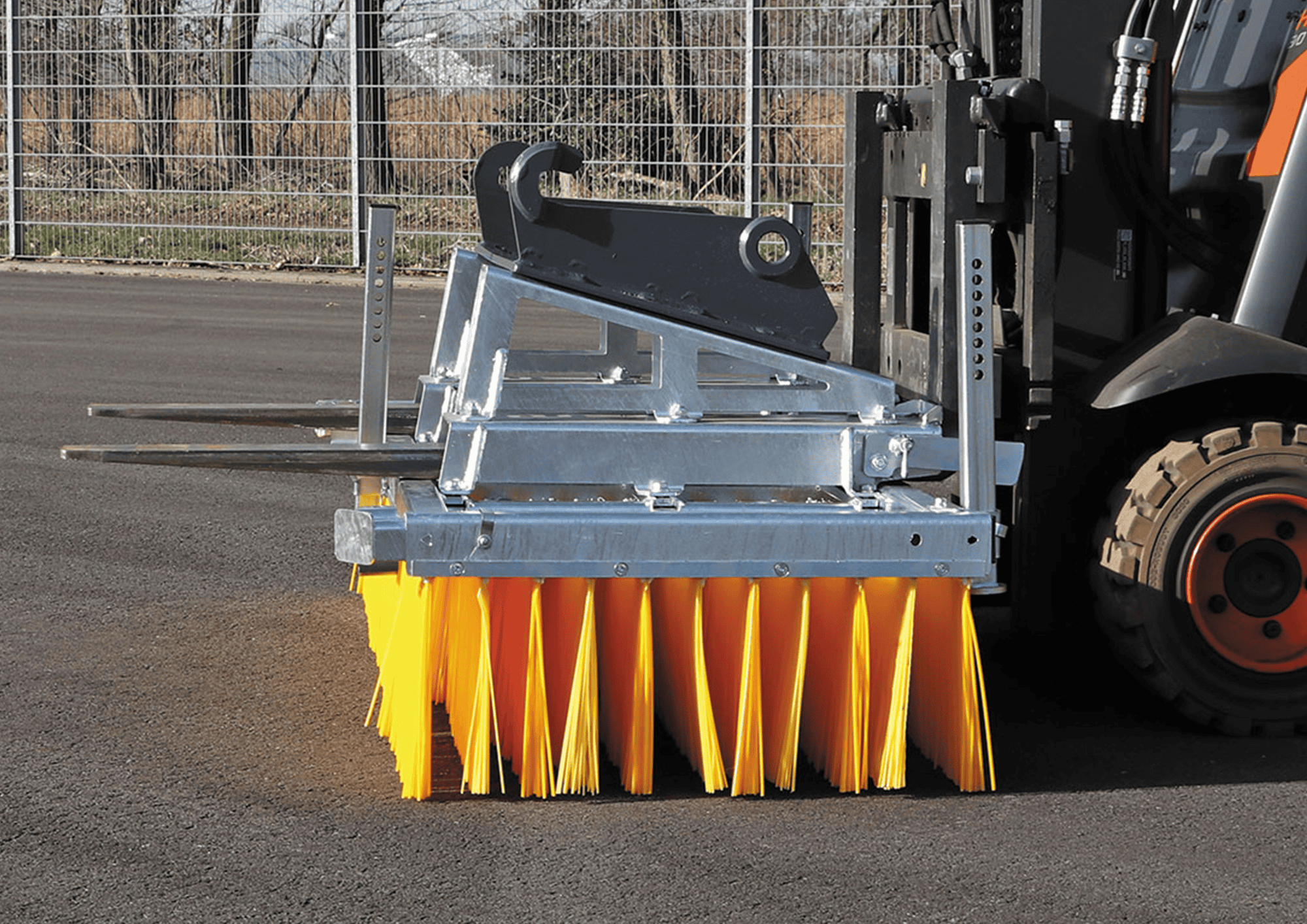 Je merkt al snel dat de Bema 11 flexibel inzetbaar is. Er zijn verschillende aanbouwdelen beschikbaar, waardoor je de bezem makkelijk kunt koppelen aan het voertuig dat jij gebruikt. Of je nu werkt met een heftruck, wiellader, shovel of tractor, de aansluiting gaat snel en zonder gedoe. Zo heb jij een duurzame, betrouwbare blokbezem die klaarstaat voor dagelijks werk op ieder terrein.