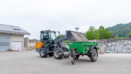 De machine is uitgerust met stevige 8 tons planetaire assen met limited slip. Deze geven de kniklader extra grip en stabiliteit, waardoor hij ook op losse of natte ondergrond goed door kan trekken. Met een trekkracht van 20.000 N kunnen zware materialen gemakkelijk worden verplaatst, wat het werk sneller en eenvoudiger maakt.