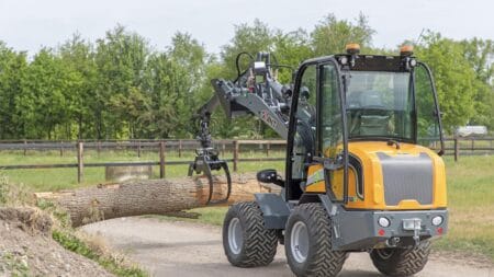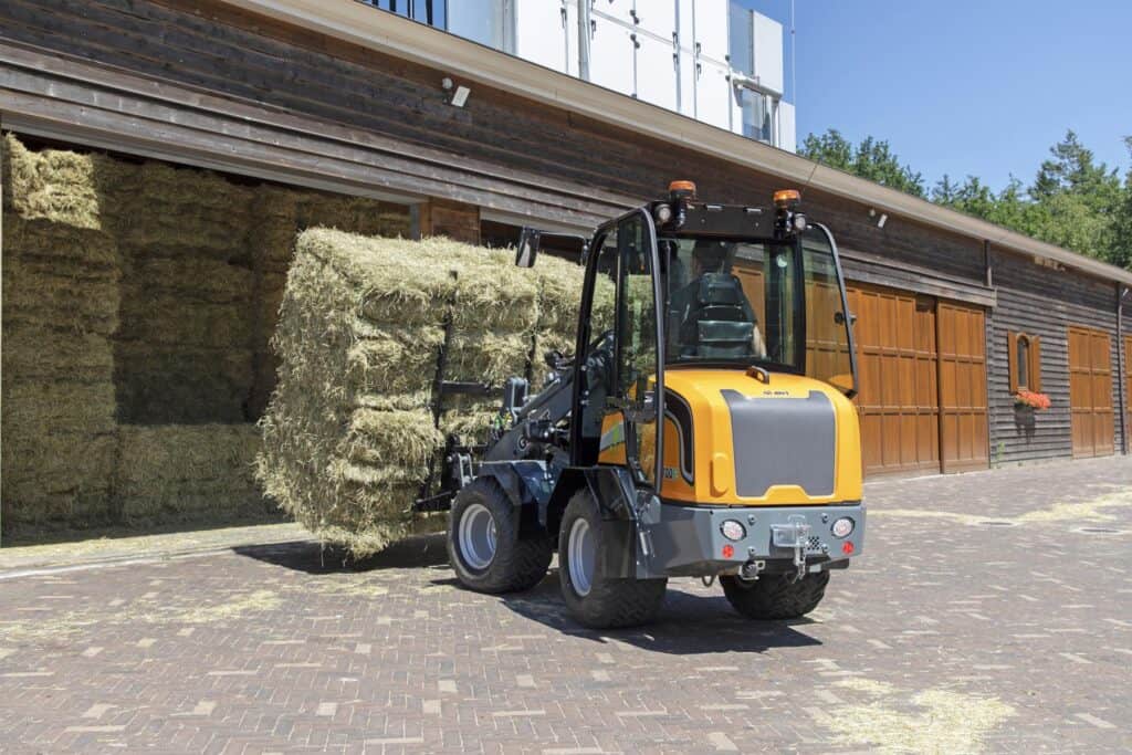 De G2700E is een krachtige elektrische wiellader die groter en sterker is dan eerdere modellen. Dankzij zijn stevige constructie kan hij zware materialen eenvoudig tillen en verplaatsen. Het tillen en vervoeren van een complete pallet klinkers of tegels is geen probleem, omdat de machine een hoge kiplast van 3.230 kilogram heeft. Dit maakt de shovel geschikt voor intensief en zwaar werk.