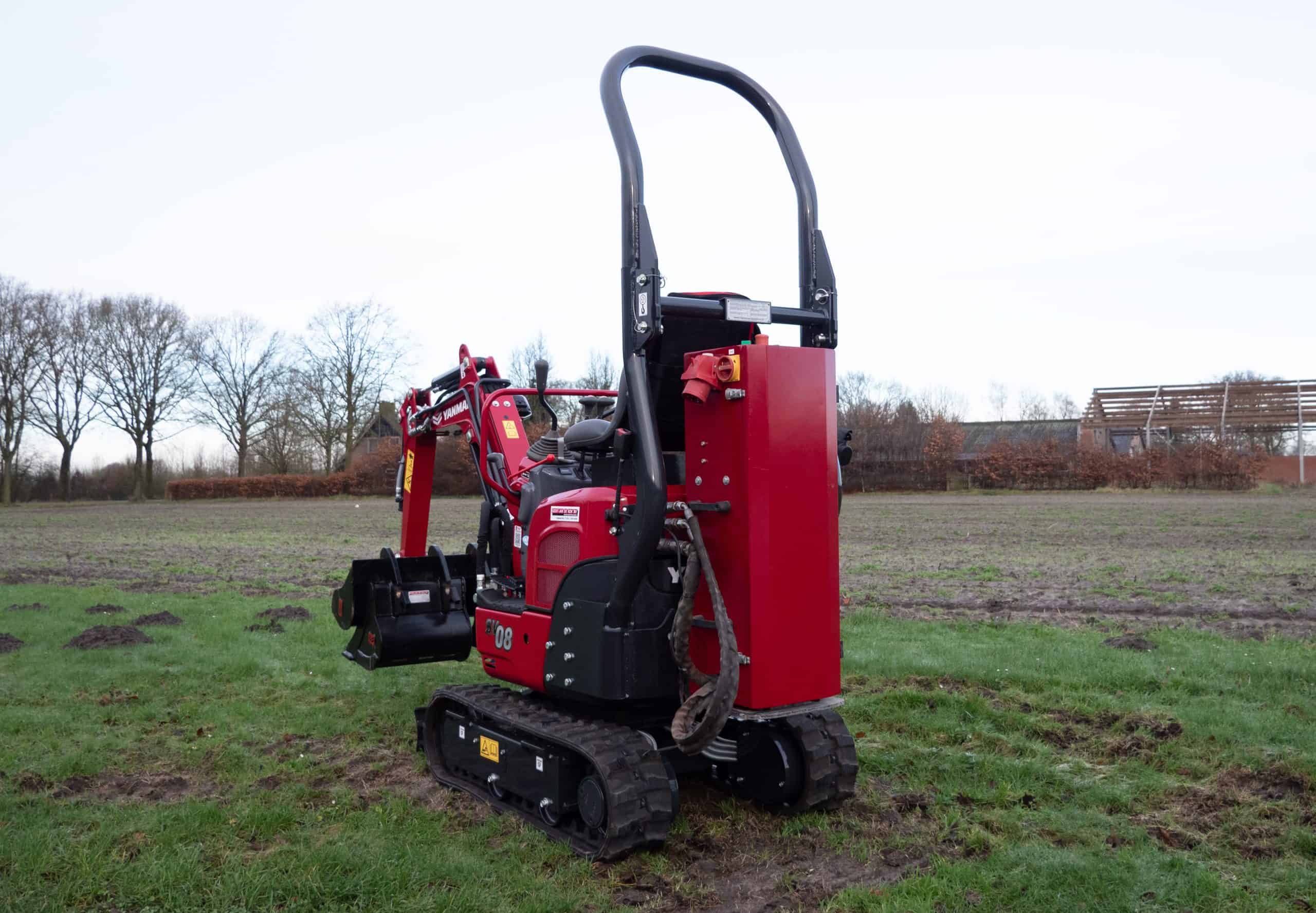 De Yanmar SV08 is een compacte, maar krachtige machine die ideaal is voor werk op plekken waar de ruimte beperkt is. Dankzij de hydraulisch verstelbare onderwagen past de machine zich makkelijk aan, met een minimale breedte van slechts 680 mm. Daardoor komt hij probleemloos door smalle doorgangen of hekken. Standaard is de SV08 uitgerust met een stevige rolbeugel, een extra functie én bediening aan de voorzijde, wat het werken nog gemakkelijker maakt. De dieselmotor is niet alleen krachtig, maar voldoet ook aan de nieuwste Stage V emissienormen. Dat betekent dat u zonder zorgen kunt werken, met een machine die klaar is voor de toekomst. Of het nu gaat om werkzaamheden in een achtertuin, kelder of binnenruimte, de Yanmar SV08 is er helemaal op gebouwd om efficiënt, veilig en betrouwbaar te presteren. Een kleine krachtpatser die groots werk levert.