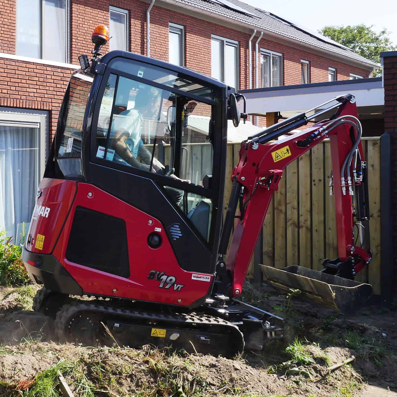 De Yanmar SV19vt is een compacte graafmachine met slimme en praktische eigenschappen die direct opvallen. De robuuste giek is zo ontworpen dat de slangen en leidingen aan de binnenkant zijn weggewerkt, wat de kans op schade aanzienlijk vermindert. Tijdens het werken geeft de digitale interface je duidelijk inzicht in alle belangrijke informatie, zodat je altijd goed op de hoogte bent van de status van de machine. De automatische schakeling tussen de twee rijsnelheden en het ViPPS hydraulieksysteem zorgen ervoor dat je altijd soepel en comfortabel kunt werken, zelfs bij intensief gebruik. Onder de kap ligt een krachtige en tegelijk zuinige Yanmar dieselmotor, die voldoet aan de strengste Stage V emissienormen. Alle servicepunten zijn makkelijk bereikbaar, wat het onderhoud eenvoudig maakt. De SV19vt is daarmee een ideale keuze voor professionals die een betrouwbare, comfortabele en duurzame machine zoeken waarmee ze elke klus aankunnen.