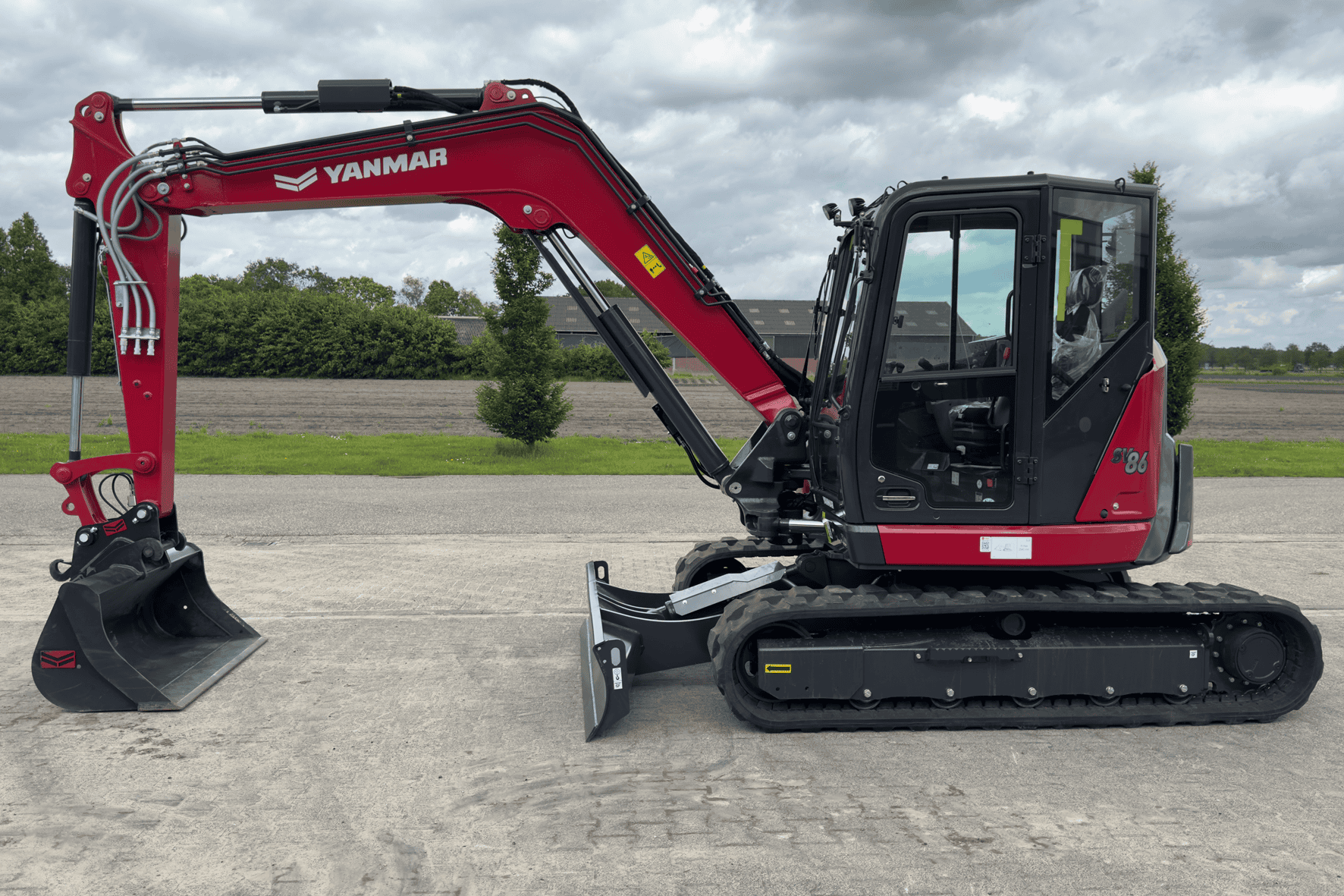 De 8.6 tons buitendraaier van Yanmar is speciaal ontwikkeld voor de Europese markt en biedt een flinke stap vooruit ten opzichte van zijn voorganger. Met ruim 20% meer motorvermogen levert deze machine indrukwekkende prestaties, zelfs onder zware omstandigheden. Wat direct opvalt, is de ruime en moderne cabine waarin comfort en functionaliteit samenkomen. Binnenin vind je handige opbergvakken, een USB- en 12V-aansluiting voor het opladen van apparaten en een overzichtelijk 7-inch kleurendisplay dat eenvoudig te bedienen is via een jog-dial of knoppen. De bediening van de machine is intuïtief en efficiënt, met proportioneel instelbare hydraulische functies via de joysticks. Voor extra gemak is het eerste hulphydraulische circuit voorzien van een drukverlaging via een tuimelschakelaar, en beschikt het dozerblad over een zweefstand. Met de hoogste uitbreekkracht in zijn klasse is deze machine klaar voor elke klus, groot of klein. Een echte krachtpatser die ook nog eens prettig werkt.