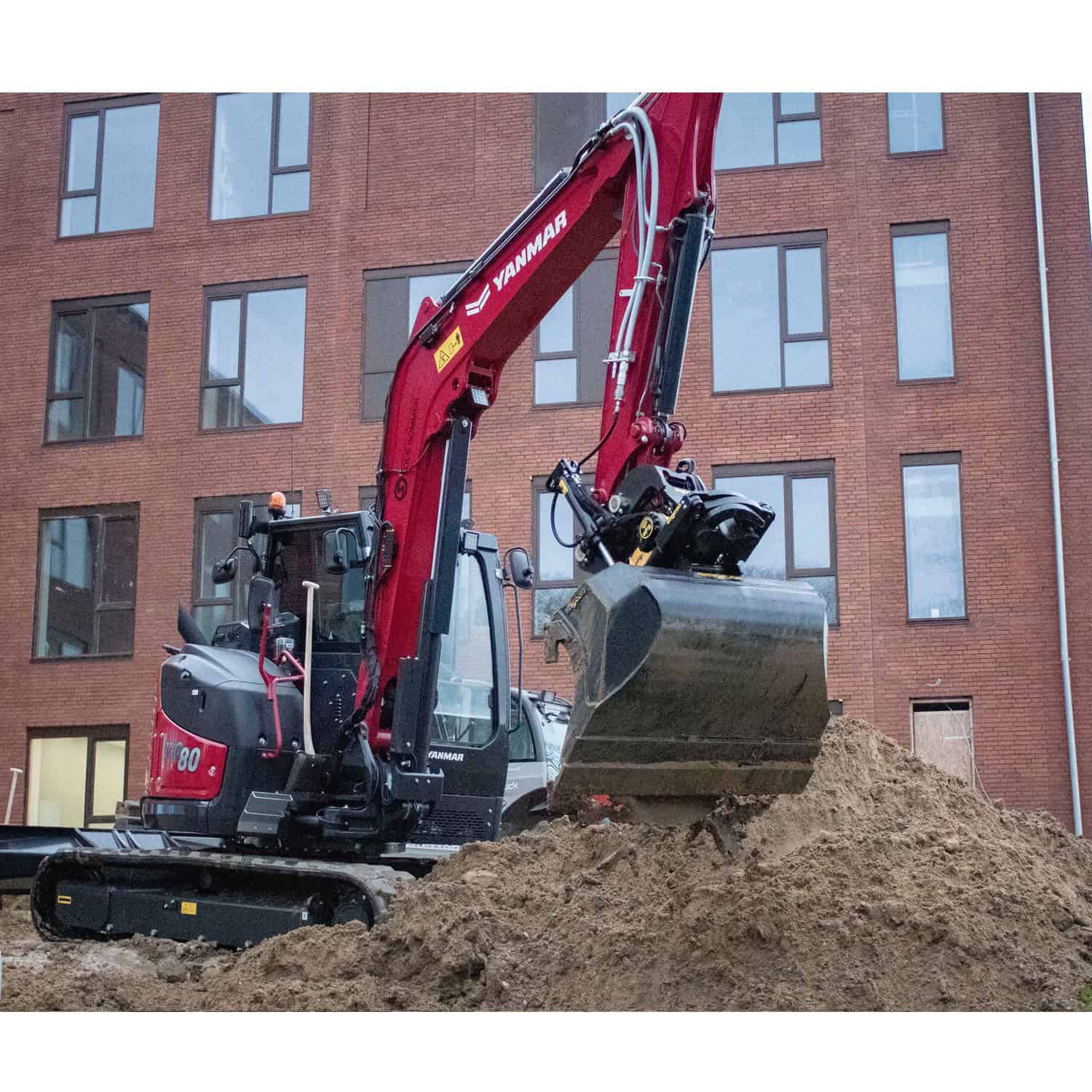 De Yanmar VIO80 met monogiek is een betrouwbare en krachtige graafmachine die perfect aansluit bij de wensen van de professionele gebruiker. Alles wat je verwacht van een machine in deze klasse is aanwezig. De cabine is ruim opgezet en biedt veel beenruimte, wat zorgt voor comfort tijdens lange werkdagen. Daarnaast heb je vanuit de cabine uitstekend zicht op het werk, wat niet alleen prettig, maar ook veilig is. De werklampen zijn standaard uitgevoerd in LED, waardoor je ook bij minder licht goed kunt blijven werken. De extra functies zijn eenvoudig en nauwkeurig te bedienen dankzij de proportionele aansturing in de joysticks. Onder de motorkap ligt een sterke Yanmar 4-cilinder dieselmotor die garant staat voor betrouwbare prestaties en een laag brandstofverbruik. Deze motor voldoet uiteraard aan de strenge Stage V normen, zodat je klaar bent voor de toekomst en voldoet aan alle milieueisen zonder concessies te doen aan vermogen.